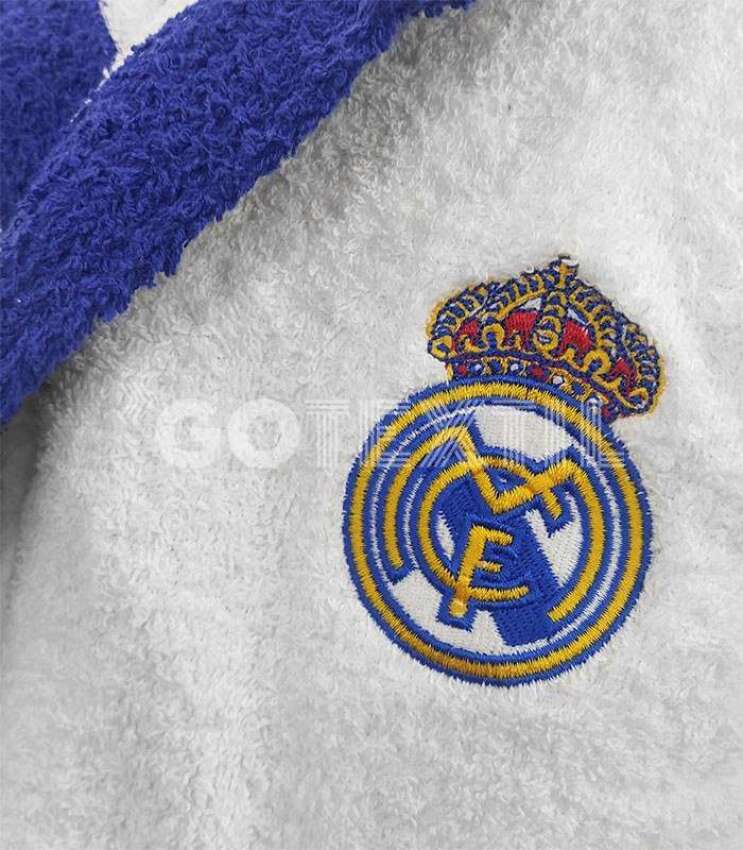Licencia oficial: Albornoz REAL MADRID original con escudo bordado del club.