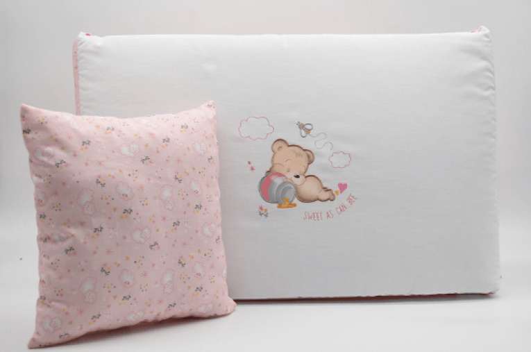Con dibujos de un oso y un tarro de miel, este conjunto está disponible en colores rosa y azul, perfecto para la habitación de tu bebé.