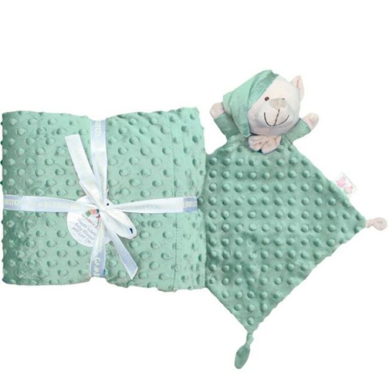 Diseño encantador: Set con manta y dou dou con topitos en relieve.