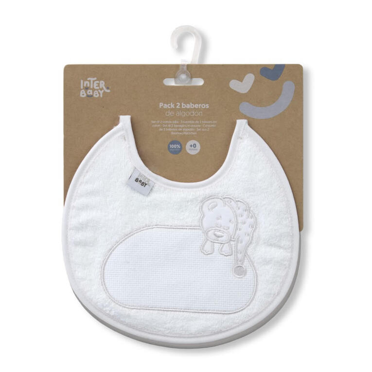Baberos con Panamá para Bordar Punto de Cruz BAB19R Osito Dormilón Pack 2 INTERBABY – Personalización, suavidad y estilo para tu bebé