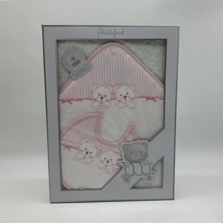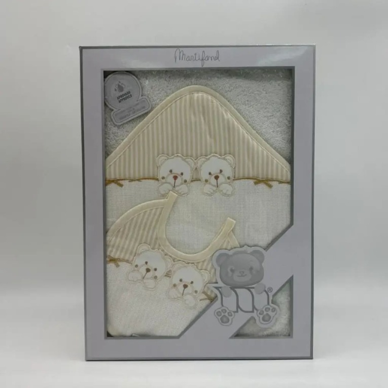 La capa de baño bebé para bordar punto de cruz con babero Martifanel Twins es un conjunto completo diseñado para el cuidado diario del bebé, combinando suavidad, absorción y la posibilidad de personalización. Fabricado en algodón 100%, este set incluye una capa de baño con capucha y un babero a juego, ofreciendo una solución práctica y coordinada.