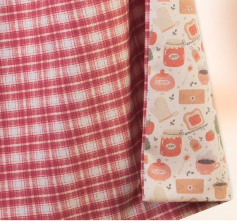 Uno de los aspectos más destacados es su diseño reversible, que permite utilizar dos estilos diferentes en una misma bolsa: una cara con estampado de cuadros y otra con diseño decorativo. Esto aporta versatilidad estética, adaptándose fácilmente a distintos ambientes de cocina.