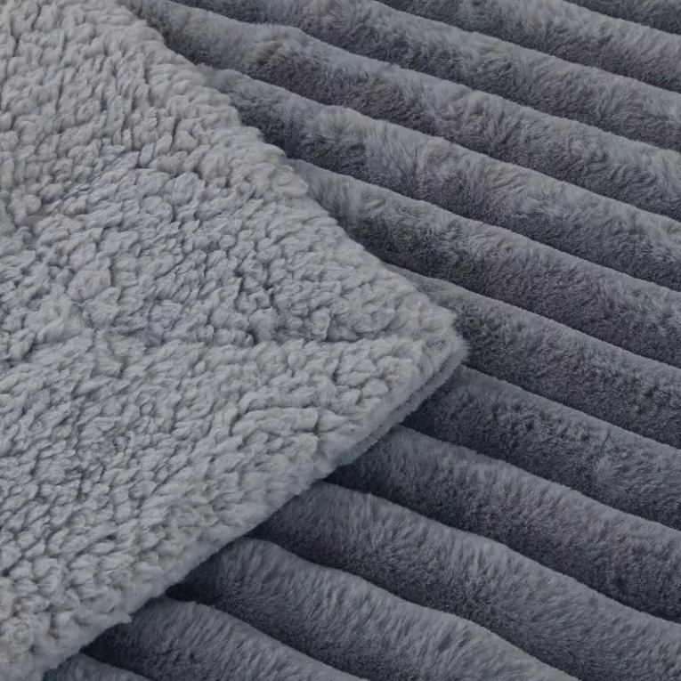 Está confeccionado con tejido exterior Super Soft 100% poliéster y un interior de borreguillo tipo sherpa, lo que garantiza suavidad, calidez y durabilidad.