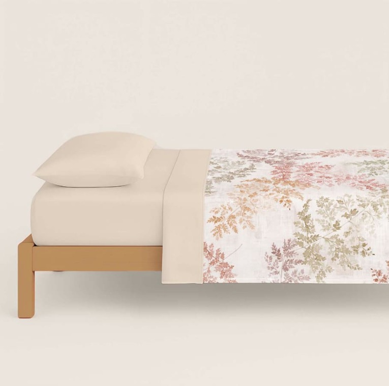 Este modelo está especialmente adaptado para camas de 150 cm y se presenta en un juego de 3 piezas, compuesto por la funda nórdica 240x265 cm y dos fundas de almohada 45x90 cm. Su tamaño amplio permite vestir la cama con una caída estética y equilibrada, logrando una apariencia impecable y envolvente. Su diseño floral, al mismo tiempo sutil y sofisticado, combina fácilmente con mobiliario en madera natural, estilos nórdicos, ambientes románticos o decoraciones artesanales.