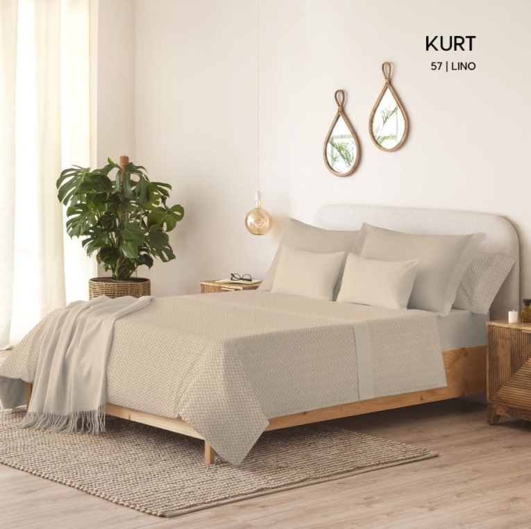 El diseño del modelo Kurt destaca por su tono lino, sobrio y elegante, perfecto para quienes prefieren una estética natural y atemporal en el dormitorio. Estas sábanas combinan fácilmente con edredones, colchas o fundas nórdicas, aportando un toque de armonía y calidez al ambiente.