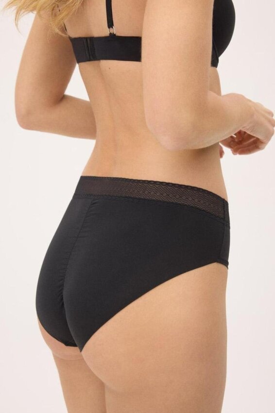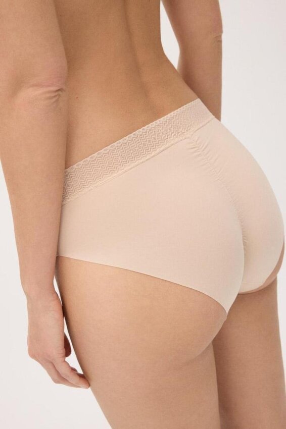 La cinturilla incorpora un delicado micro encaje. Este detalle aporta un toque femenino sin comprometer la invisibilidad general de la prenda.