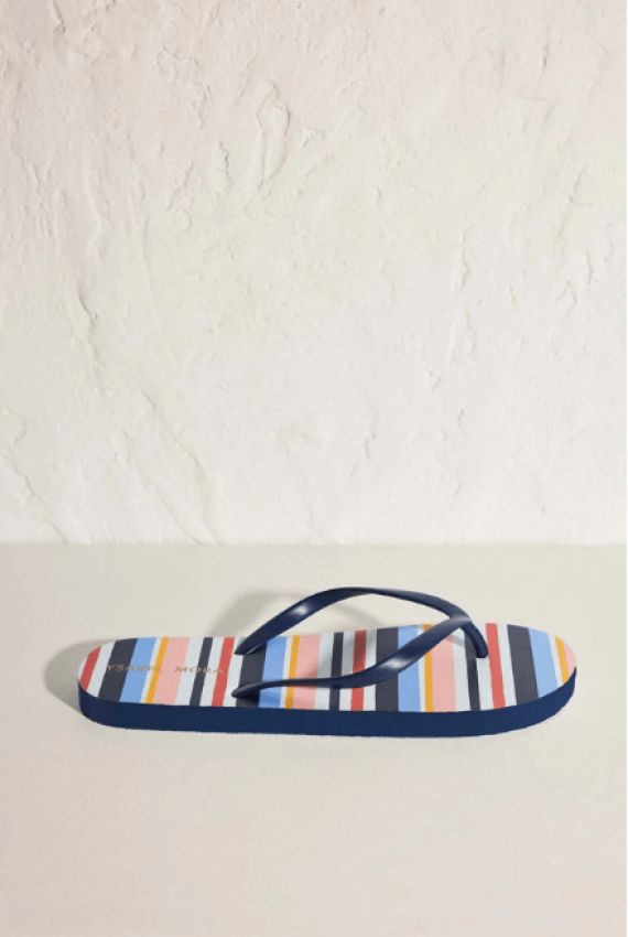 - Experimenta la moda veraniega con nuestras chanclas estampadas de rayas multicolores de Ysabel Mora 86076.